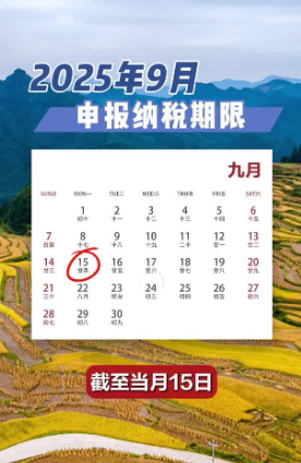 ¸ù¾Ý¡¶¹ú¼Ò˰Îñ×ְܾ칫Ìü¹ØÓÚÃ÷È·2025Äê¶ÈÉ걨ÄÉ˰ÆÚÏÞµÄ֪ͨ¡·£¬9ÔÂÉ걨ÄÉ˰ÆÚÏÞ½ØÖÁ9ÔÂ15ÈÕ¡£